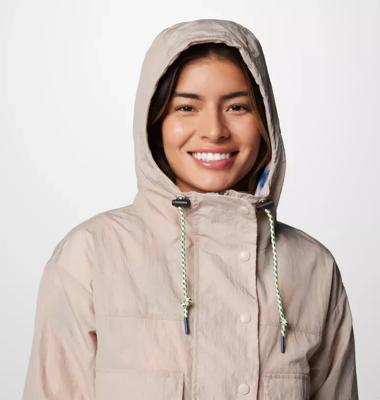 - Drawcord-adjustable hood seals out the elements