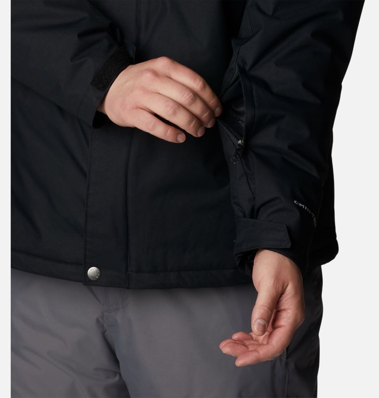 Get multi-layered waterproof-breathable protection in this insulated jacket with a heat-reflective technology and a removable hood.