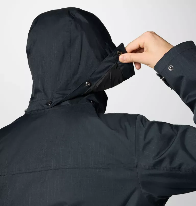 - Removable, drawcord-adjustable hood and adjustable hem and cuffs on the outer jacket seal out the elements