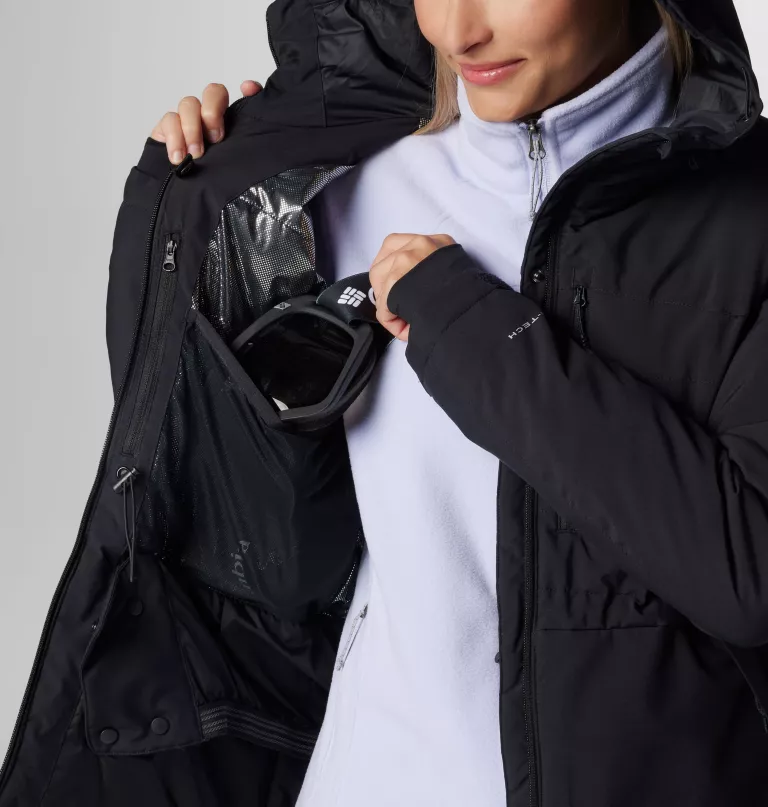 - Pockets for a ski pass and goggles, along with zippered chest and hand pockets and an interior security pocket to secure valuables