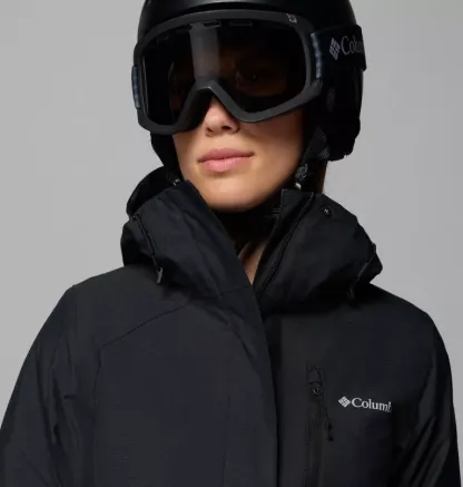 - Adjustable, snap-back powder skirt blocks wind and snow