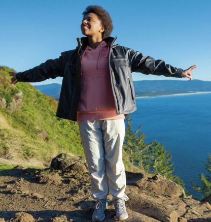 An adjustable hood stays in place when the wind picks up, and adjustable cuffs help seal out moisture.